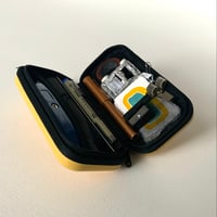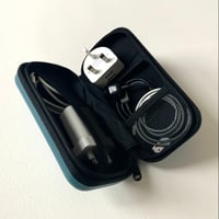 Hardshell case, with inner net pockets, for carrying art materials and device-related bits and bobs around without worrying about them being squashed.