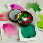 7 half pans of artist quality highly pigmented handmade watercolour paint in a tin (8.6cm diameter, 2.5cm height).