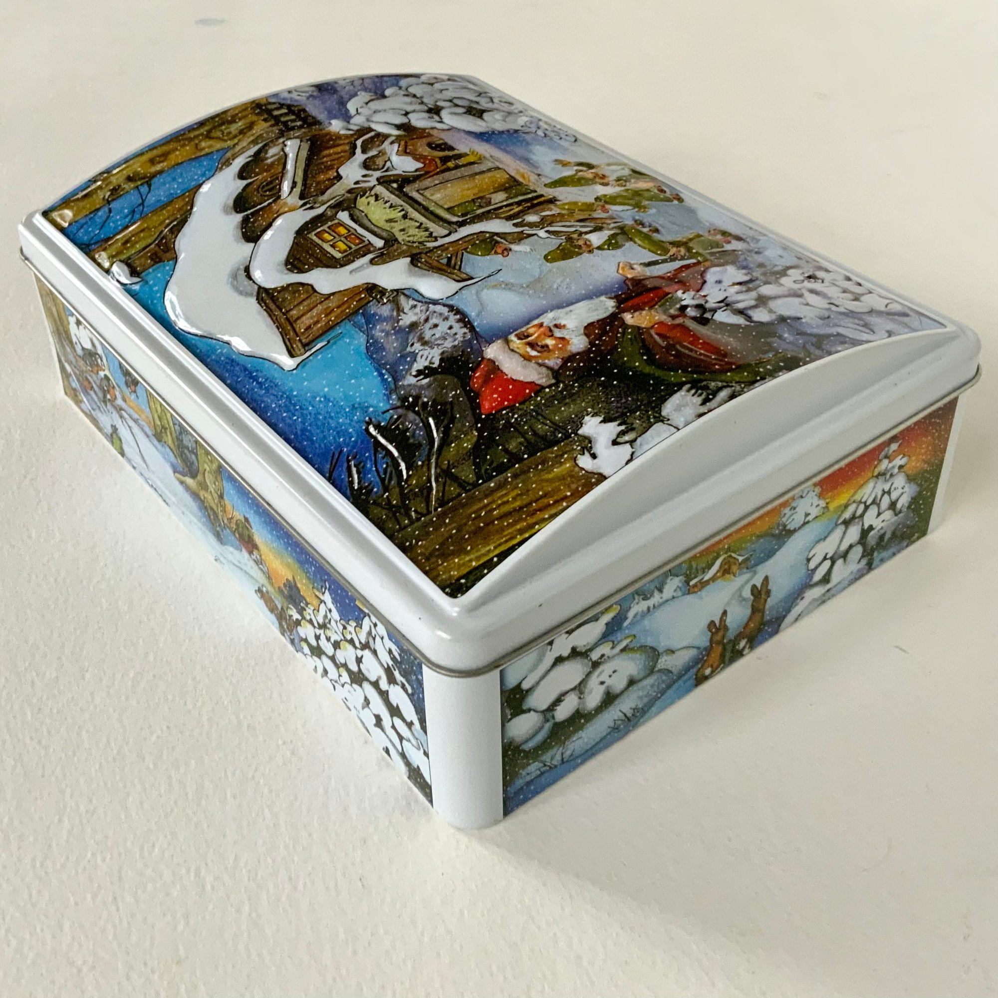 Empty Christmassy tin (24.3x18.5x8.3cm).