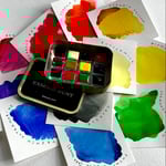 12 half pans of artist quality highly pigmented handmade watercolour paint in a vintage tobacco tin (11.2x2.6x8.2cm).