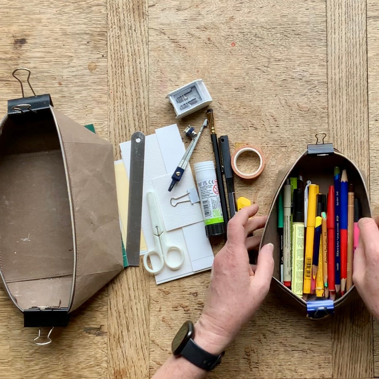 This is a lightweight yet robust case that zips flat then opens up to become a surprisingly expansive tray. Perfect for travel. Admittedly, it is on the pricy side for a pencil case, but I bought them for myself and love them so much I thought I’d share them with you.