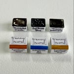 Three artist quality highly pigmented handmade watercolour paints in the following lightfast pigments: Transparent Red Oxide (PR101), Transparent Yellow Oxide (PY42) and Indanthrone Blue, PB60.